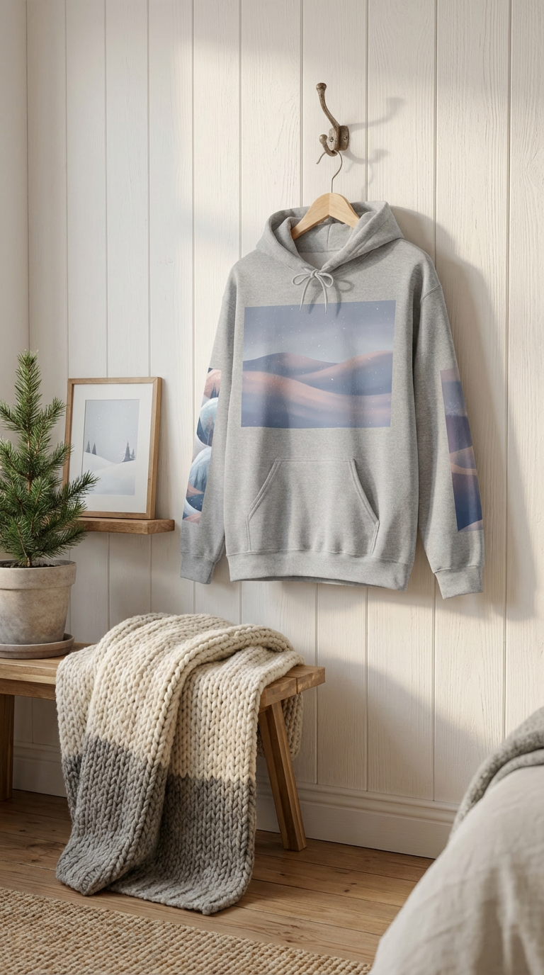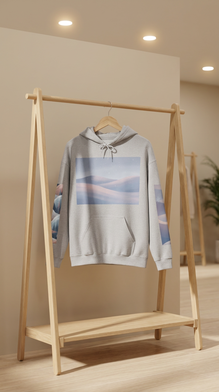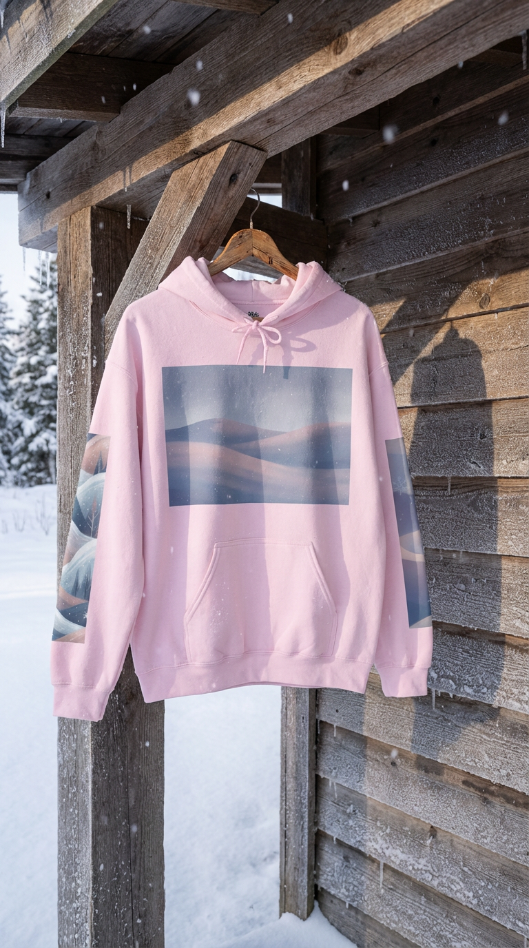 Pastel Desert Hoodie — Cozy Winter Hoodie with Soft Pastel Desert Graphic