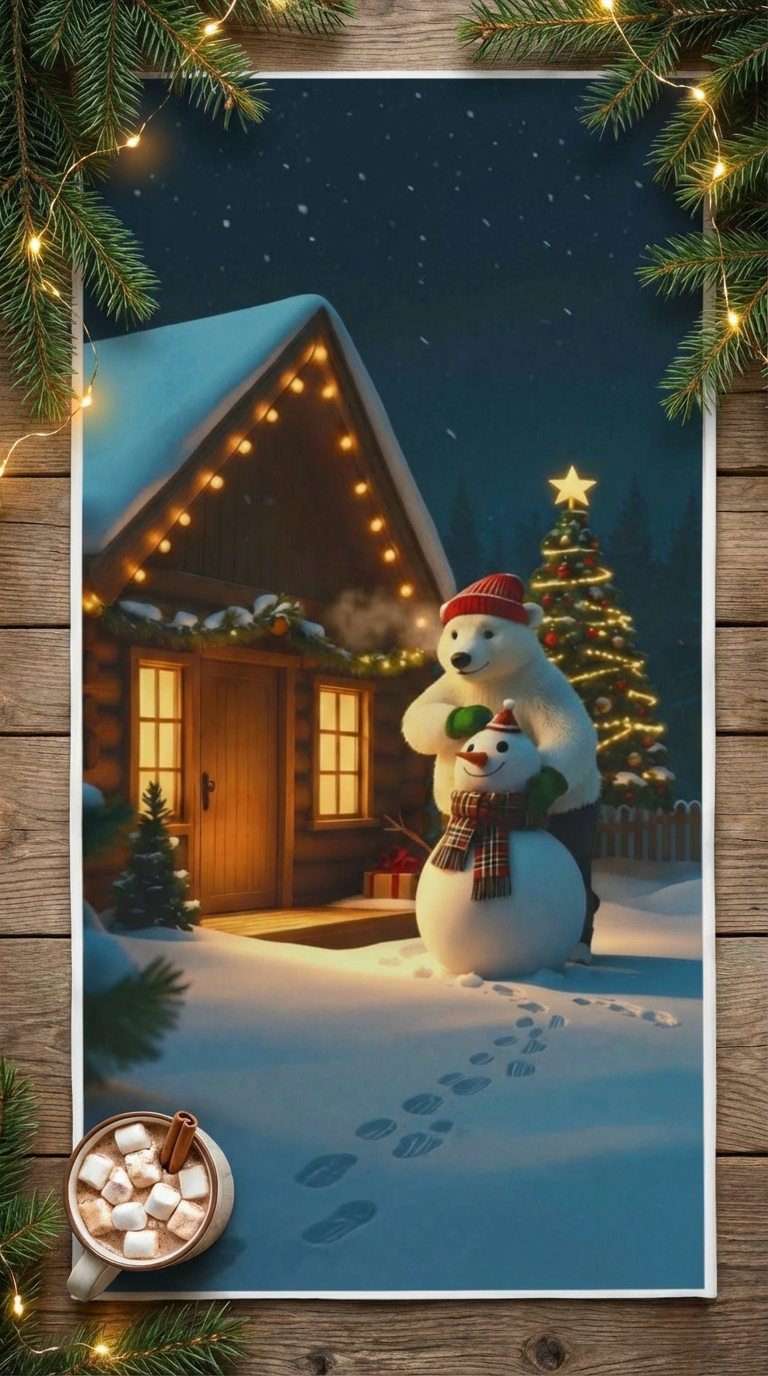 Holiday Fleece Blanket — Cozy “Boro the Bear & Snowman” Winter Cabin Scene